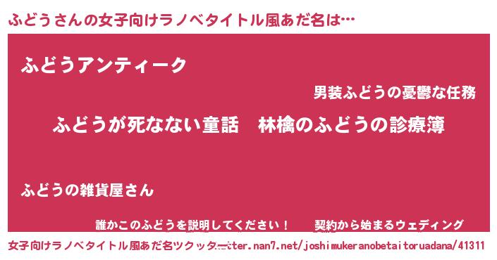 | ヒーロー風カッコイイあだ名 | 『仮面フドダー』『サイバー戦士フドウ』 |