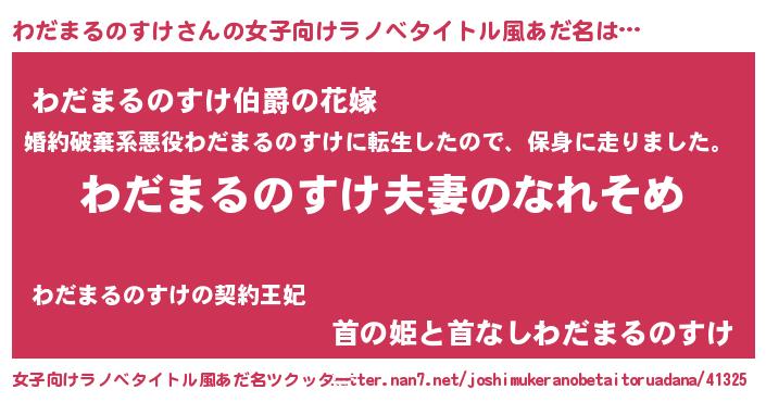 | 男性向けラノベタイトル風あだ名 | 『おまえをオタクにしてやるから、俺をわだまるのすけにしてくれ! 』 |