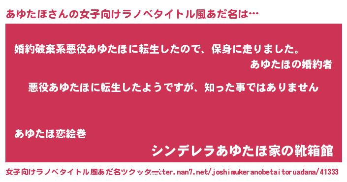 | 男性向けラノベタイトル風あだ名 | 『この素晴らしい世界にあゆたほを!』 |