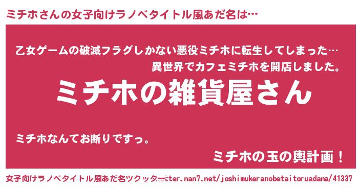 | 男性向けラノベタイトル風あだ名 | 『やはりミチホの青春ラブコメはまちがっている 』 |