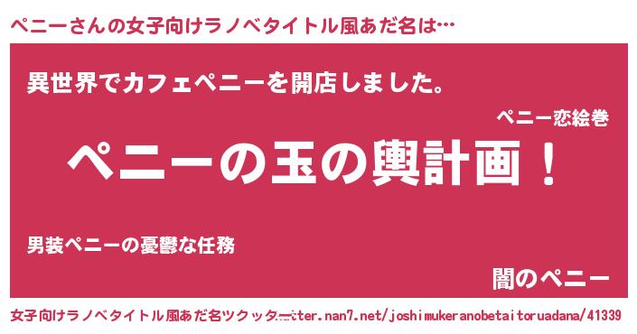 | ヘコむあだ名 | 『ペニー(爆)』『ペニにゅー』 |