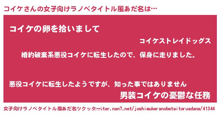 | 男性向けラノベタイトル風あだ名 | 『コイケスレイヤー』 |