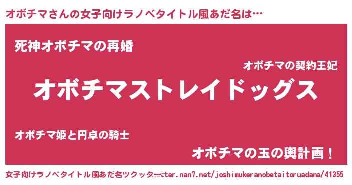| 男性向けラノベタイトル風あだ名 | 『Re:オボチマから始める異世界生活』 |
