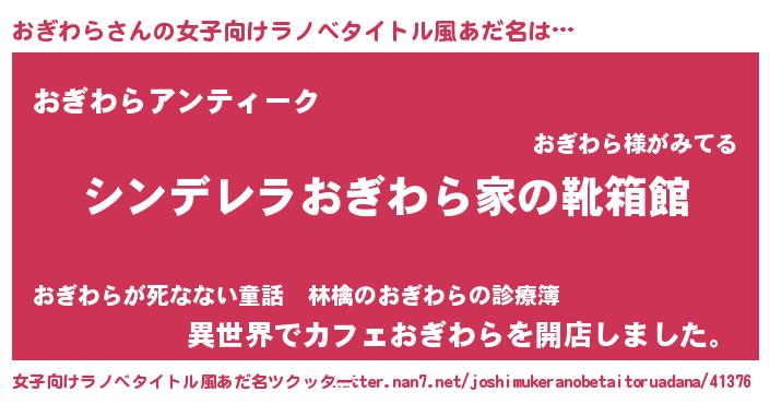 | 意味不明あだ名 | 『自称おぎわら』『永久保存おぎわら』 |