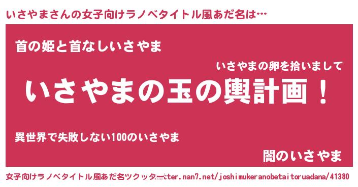| ヘコむあだ名 | 『いさっ子』『いさやま(小並感)』 |