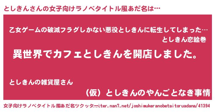 | ヘコむあだ名 | 『としきん(笑)』『としふぇ~』 |