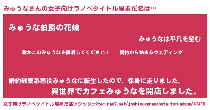 | 男性向けラノベタイトル風あだ名 | 『ミュウナアートオンライン』 |