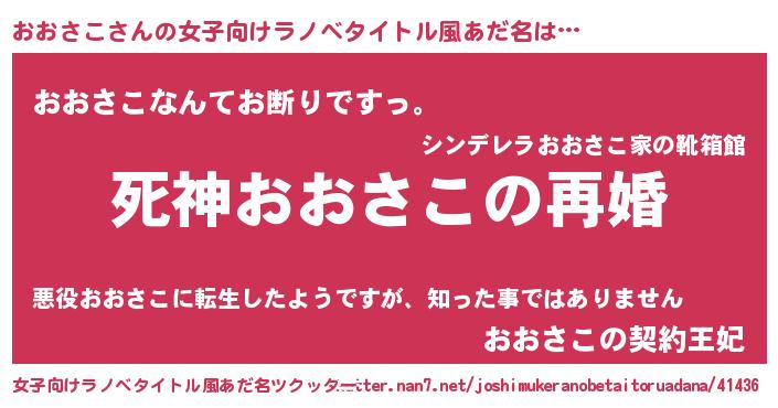 | 男性向けラノベタイトル風あだ名 | 『ノーゲーム・ノーオオサコ』 |