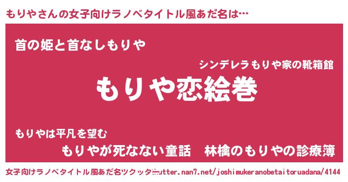 | 男性向けラノベタイトル風あだ名 | 『ノーゲーム・ノーモリヤ』 |