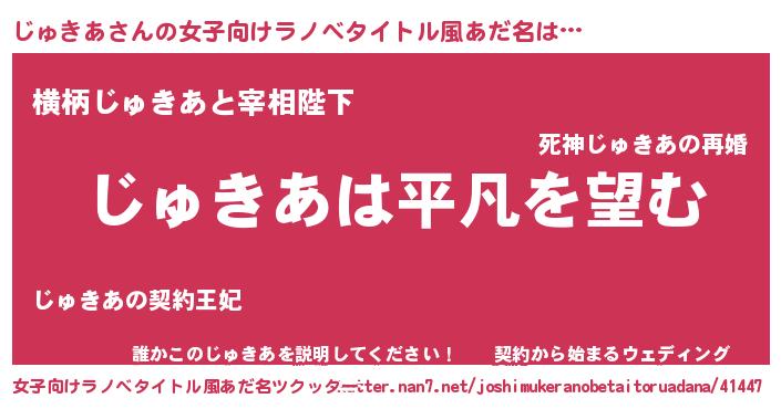 | 意味不明あだ名 | 『とにかく怪しいじゅきあ』 |