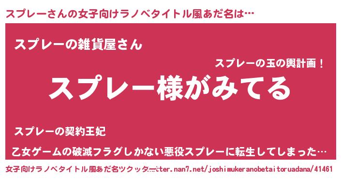 | 胡散臭い通販商品みたいなあだ名 | 『全米が絶賛したサプリメント…その名も「スプレー」』 |