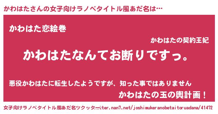 | ヘコむあだ名 | 『かわはた(爆)』『かわっ子』『豆乳』 |
