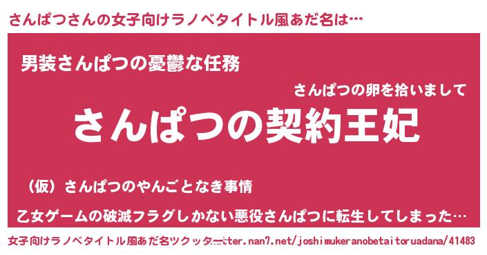 | 胡散臭い通販商品みたいなあだ名 | 『来世でも幸せになれる健康食品…その名も「さんぱつ」』 |