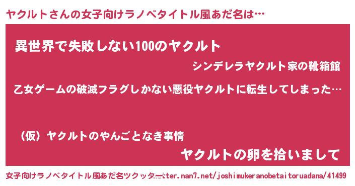 | 意味不明あだ名 | 『住所不定無職ヤクルト(9歳)』 |