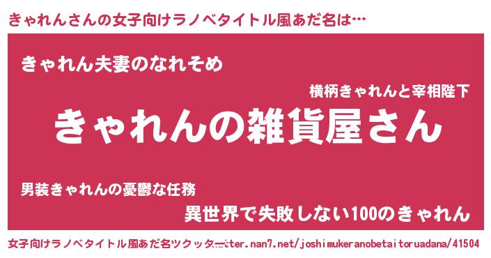 | 男性向けラノベタイトル風あだ名 | 『やはりきゃれんの青春ラブコメはまちがっている 』 |