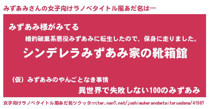 | 男性向けラノベタイトル風あだ名 | 『緋弾のミズアミ』『ミズアミスレイヤー』 |