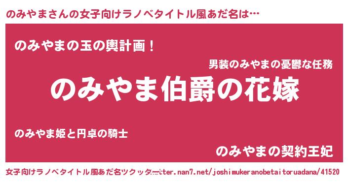| 男性向けラノベタイトル風あだ名 | 『やはりのみやまの青春ラブコメはまちがっている 』 |