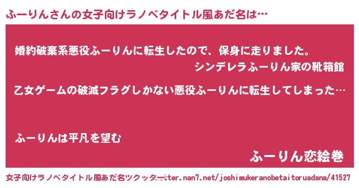 | ヒーロー風カッコイイあだ名 | 『仮面フーダー』『正義の使者ふーりん』 |