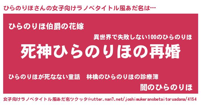 | ヒーロー風カッコイイあだ名 | 『慈愛の使者ひらのりほ』『仮面ヒラダー』 |