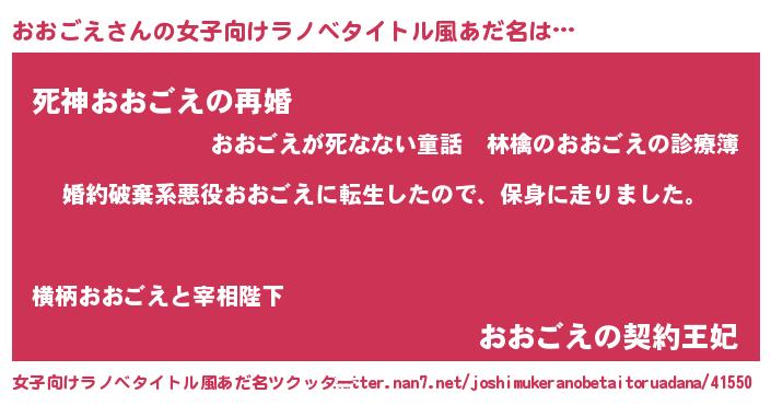 | 男性向けラノベタイトル風あだ名 | 『オオゴエスレイヤー』 |