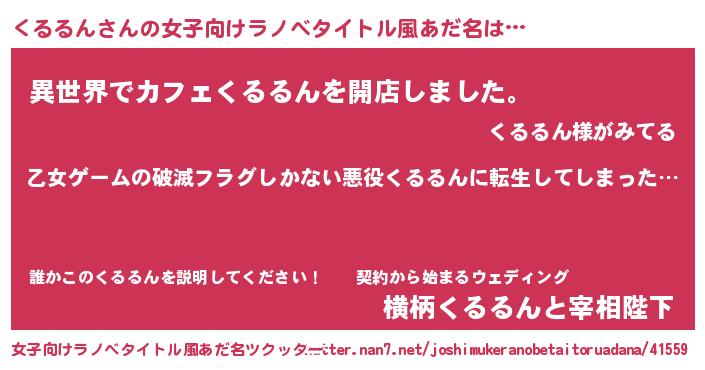 | 男性向けラノベタイトル風あだ名 | 『魔弾の王とくるるん』 |