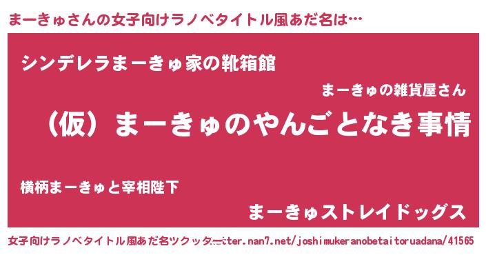 | 男性向けラノベタイトル風あだ名 | 『まーきゅの憂鬱』『緋弾のマーキュ』 |