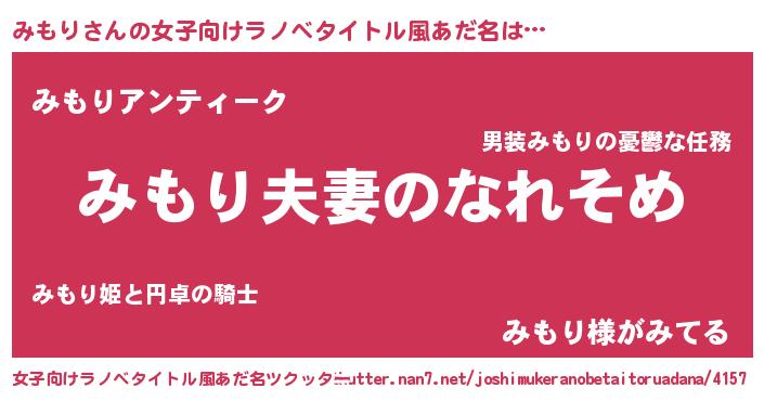 | 男性向けラノベタイトル風あだ名 | 『おまえをオタクにしてやるから、俺をみもりにしてくれ! 』 |