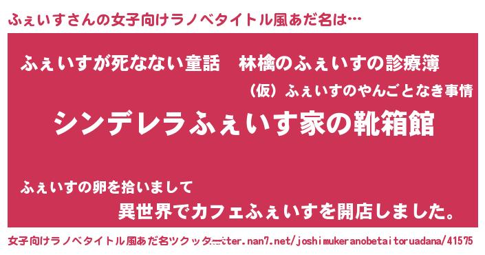 | ヘコむあだ名 | 『ふぇいす(小並感)』『ふぇもー』 |