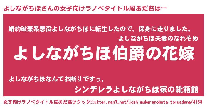 | ファンタジー風あだ名 | 『エターナルヨシナガチホー』 |