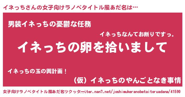 | 男性向けラノベタイトル風あだ名 | 『ダンジョンにイネっちを求めるのは間違っているだろうか』 |