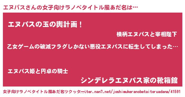 | 男性向けラノベタイトル風あだ名 | 『魔弾の王とエヌパス』『緋弾のエヌパス』 |