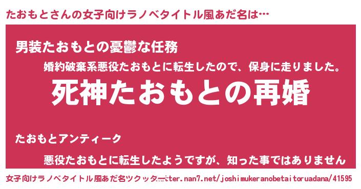 | 男性向けラノベタイトル風あだ名 | 『ノーゲーム・ノータオモト』 |