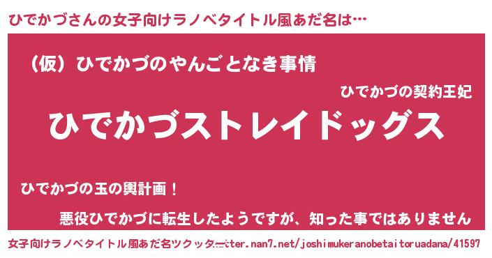 | 男性向けラノベタイトル風あだ名 | 『Re:ひでかづから始める異世界生活』 |