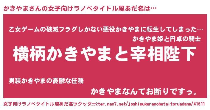 | 男性向けラノベタイトル風あだ名 | 『かきやまに滅ぼされるだけの簡単なお仕事です』 |
