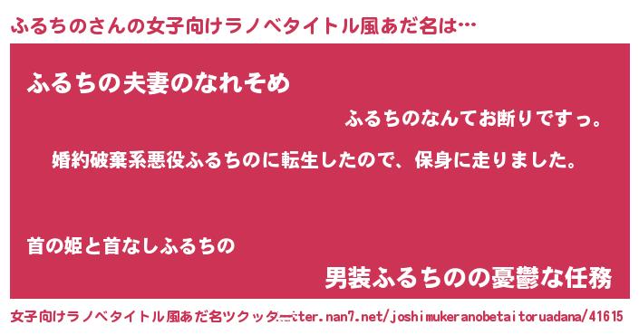 | 男性向けラノベタイトル風あだ名 | 『転生したらふるちのだった件』 |