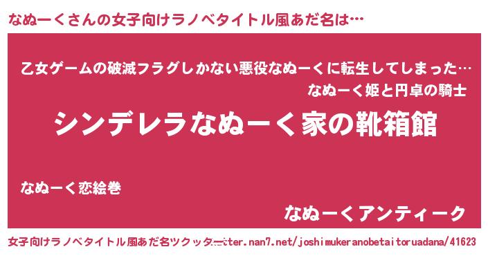 | 意味不明あだ名 | 『住所不定無職なぬーく(93歳)』 |