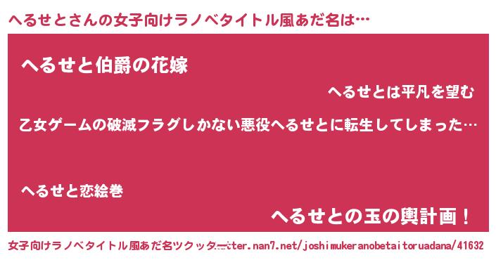 | 胡散臭い通販商品みたいなあだ名 | 『世界中を虜にした100年もののヴィンテージワイン…その名も「へるせと」』 |
