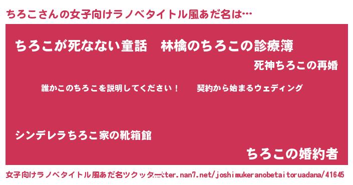 | 胡散臭い通販商品みたいなあだ名 | 『億万長者になれるブレスレット…その名も「ちろこ」』 |