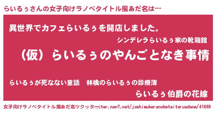 | ヘコむあだ名 | 『らいにゅー』『らいるぅ(小並感)』 |