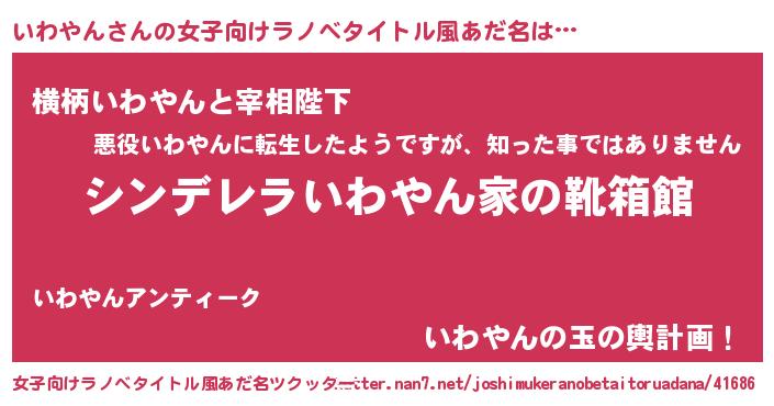 | 男性向けラノベタイトル風あだ名 | 『冴えないいわやんの育てかた』 |