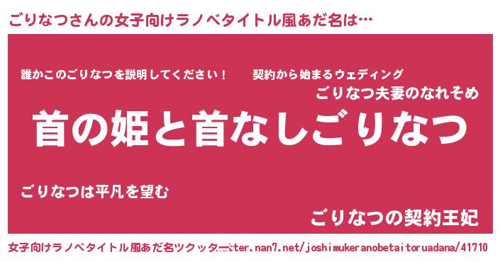 | 男性向けラノベタイトル風あだ名 | 『はたらくごりなつさま!』 |