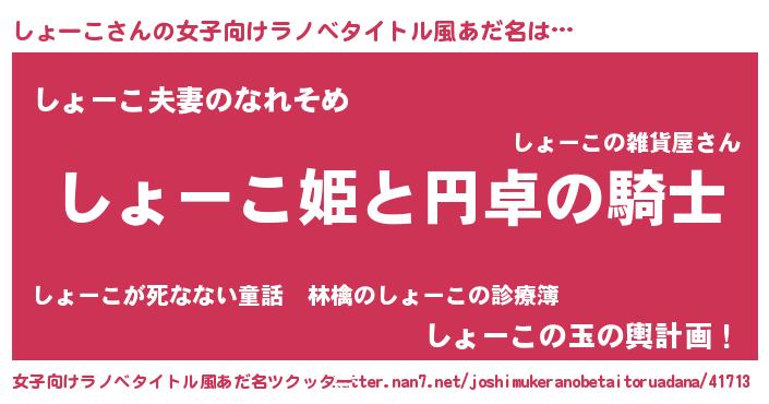 | 胡散臭い通販商品みたいなあだ名 | 『モテモテ間違いなしブレスレット…その名も「しょーこ」』 |