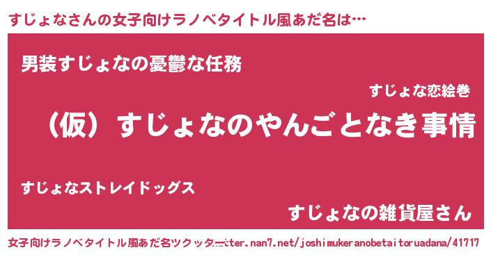 | 胡散臭い通販商品みたいなあだ名 | 『必ず成功するブレスレット…その名も「すじょな」』 |