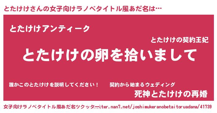 | 男性向けラノベタイトル風あだ名 | 『ダンジョンにとたけけを求めるのは間違っているだろうか』 |