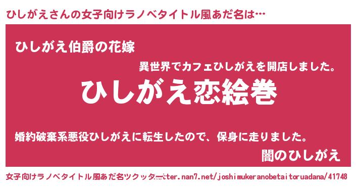 | 男性向けラノベタイトル風あだ名 | 『ノーゲーム・ノーヒシガエ』 |