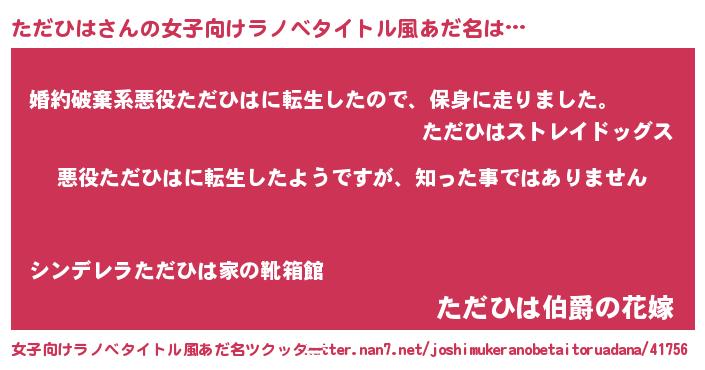 | 意味不明あだ名 | 『住所不定無職ただひは(86歳)』 |