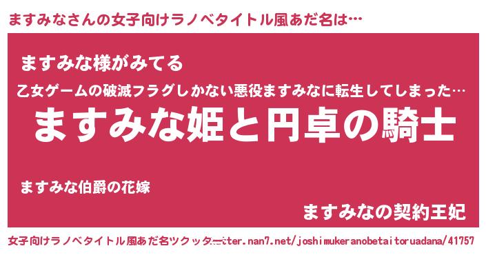 | 男性向けラノベタイトル風あだ名 | 『ますみなの憂鬱』『魔弾の王とますみな』 |