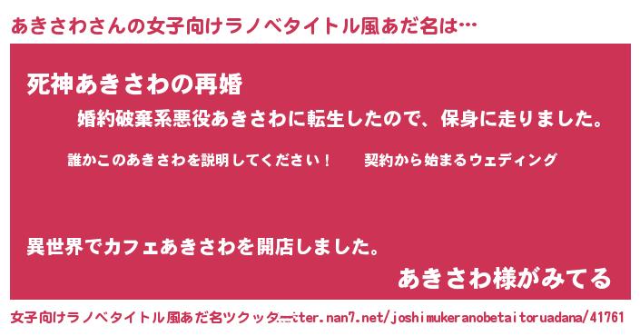 | 男性向けラノベタイトル風あだ名 | 『アキサワアートオンライン』 |