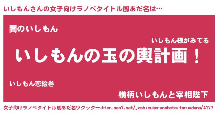 | ヘコむあだ名 | 『いし太郎』『いしっふぃ~』『豆乳』 |