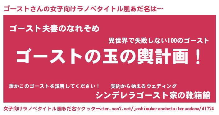 | 男性向けラノベタイトル風あだ名 | 『ゴースト~年齢イコール彼女いない歴の魔法使い~』 |